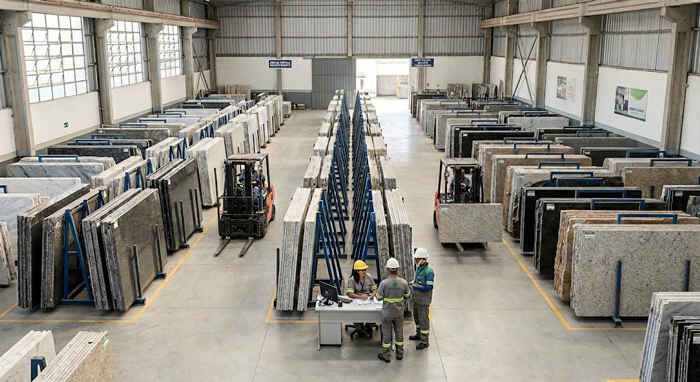 Gestão de inventário, etiquetagem QR Code e orçamentos comerciais em uma plataforma desenhada para a nobreza da rocha ornamental.
